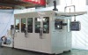 The machine produces plastic products like disposable plastic cups, plastic bowls, ice cream cups, cold drinking cups, yoghurt cups, coffee cups, jelly cups, plastic dishes, plastic trays, plastic lids, food containers, plastic boxes, vessel for fast-food etc. It suits for forming all kinds of sheets such as PP, HIPS, PVC, PS, PET, etc. 1. It adopts industrial microcomputer control system, reliable and stably operation. 2. It has high-resolution screen. 3. Four pillars fix mould (compare with 2 pillars, it's more strong strength produces cups, stable quality, long life for machine and moulds)4. Servo motor drivers control sheet feeding. (compare with motor, it's morehigh precision for feeding sheet, avoid unnecessary sheet wasting)5. Servo motor drivers control stretching mechanism. (compare with cylinder, it's more stable for producing products with high quality)6. Hydraulic pressure system drives thermoforming mechanism. (compare with cam system, it's small noise, more more stable for producing products with high quality)7. It automatically lubricates mechanism movement.8. Oven system moves outside when electricity went off(protect oven system)9. Automatic load for sheet roll10. Adjusttrack width by motor11. PID temperature control.12. Rewind device forwaste material on the top of machine.13. Other electric parts use schneider, CKD, SMC, IDEC, Yuken etc.Forming Area: 650mm x 290 mm Forming Depth(Max) 130mm Suitable Material: PP, PS, PET, HIPS, PVC Sheet thickness: 0.3mm-1.2mm Sheet width(max): 650mm Roll sheet Diameter(max): 600mm Forming Speed: 25-35 recycles/min Power AC380, 50Hz, three phase Over System: Upper + Bottom oven Upper oven: 56pcs of IR ceramic heaters Bottom oven: 49pcs of IR ceramic heaters Feeding Servo Motor: 3kw Streching Servo Motor: 3kw Oil Pump Motor: 15kw Load sheet Motor: 0.75kw Rewind Motor: 0.5kw Rated Power: 80kw Actual Power: 55kw Compressed Air: 0.7-0.75mpa/1.6M3/min Water Recycle: About 0.5M3/H Overall Dimension(mm): about L6000×W2000×H2700 Weight: About 4.2T